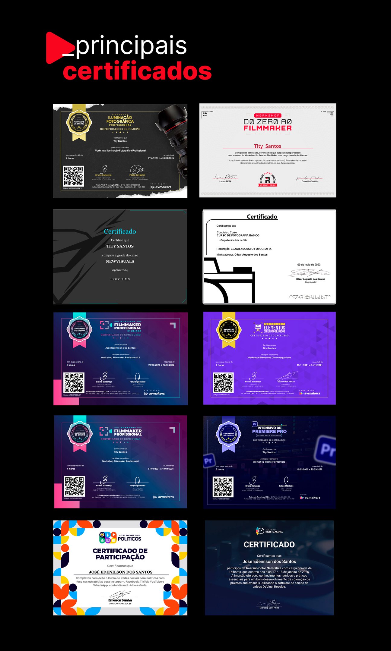 Sou Tity Santos, filmmaker, produtor audiovisual e estrategista de conteúdo, atuando no audiovisual desde 2018. Fundador da Tity Films, já entreguei +600 projetos audiovisuais e acumulei +800 mil visualizações, com trabalhos que vão de campanhas políticas e projetos culturais a produções empresariais, grandes eventos.